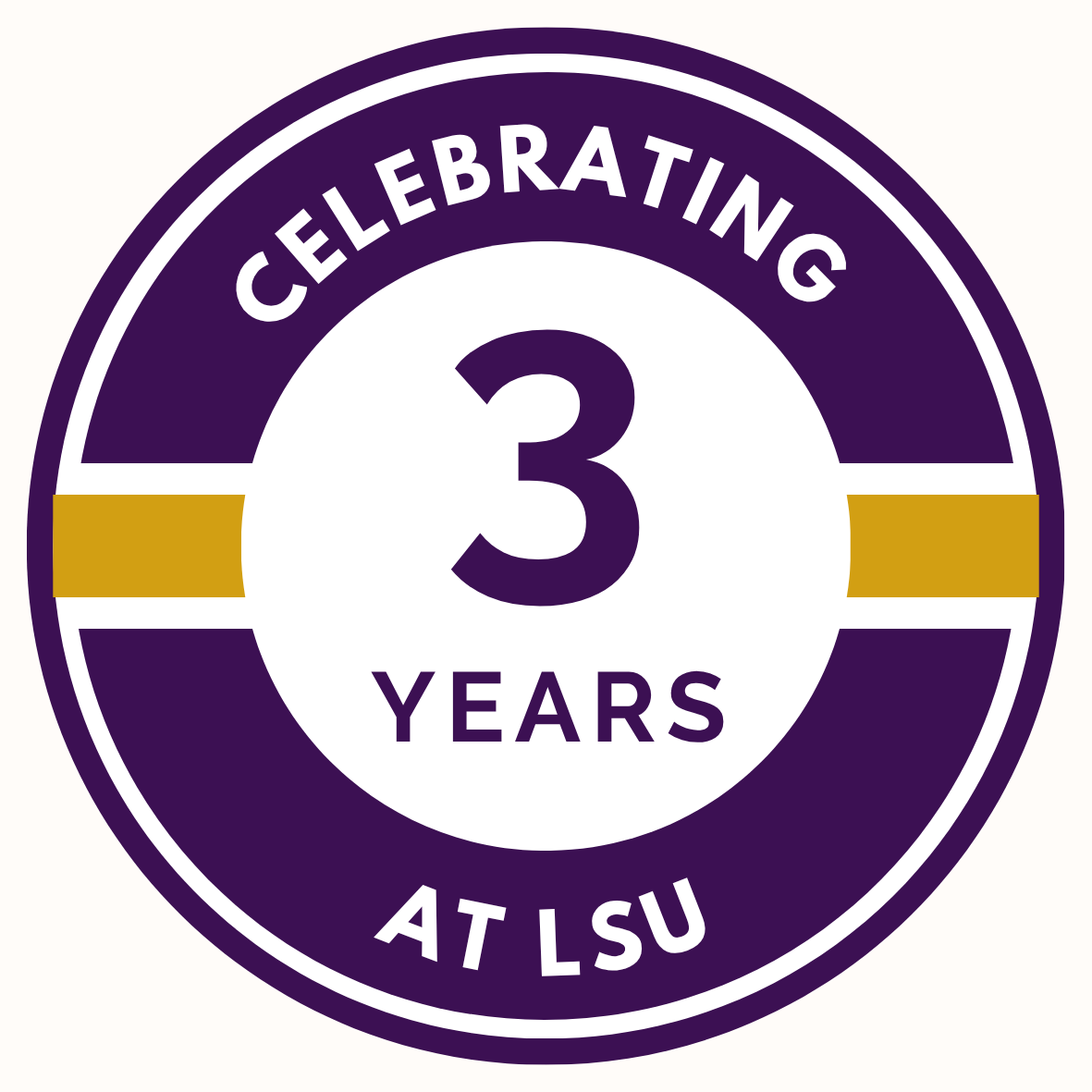 | 10, 15, 20 Years | Printed certificate, letter from the LSU President, hand-delivered by HRM, and an LSU lapel pin as a milestone gift |